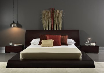 The breathtaking 4 PC Waverly Platform Bedroom Furniture Set by Modloft features a curved wood frame creating a beautiful silhouette from headboard to foot. The mattress sits snugly atop a solid pine-slat base for stylistic durability and added comfort.