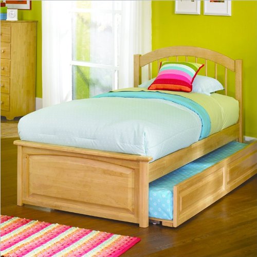 The Windsor Platform Bed is constructed of Eco-Friendly solid rubberwood hardwood in an elegant natural maple finish. Available in Twin, Full, Queen and King sizes, this platform bed features an arched headboard with vertical spindles and a raised panel footboard. The rails hook on to the headboard and footboard and are height adjustable to allow an underbed storage unit or trundle bed. Versatility abounds the Windsor Platform Bed, allowing you to create the perfect environment for any room in your home. With unique design elements chosen from country cottage styling, the Windsor Collection by Atlantic Furniture is perfect for the shrine you call your home. Finished in a number of elegant finishes, this collection will create a look of unparalleled beauty in any bedroom. Ready to astound you with its radiant attractiveness, the Atlantic Furniture Windsor is sure to garner praise from all who see it. Features: Platform Bed made of Eco-Friendly solid hardwood (rubberwood) Natural Maple finish (please see the collection page for other finishes) Available in Twin, Full, Queen and King sizes Includes headboard, footboard, rails and slats Adjustable height design allows for use with or without a box spring Accepts optional under bed storage drawers or trundle bed Arched spindle headboard with raised panel footboard Hook Pin Rail System offers a strong, long lasting connection Country cottage style Some assembly required Manufacturer limited 1-year warranty Specifications: Twin Overall Dimensions: 42.63" H x 42.5" W x 79.75" D Full Overall Dimensions: 47.25" H x 56.75" W x 79.75" D Queen Overall Dimensions: 47.25" H x 63.5" W x 85.25" D King Overall Dimensions: 47.25" H x 79.75" W x 85.25" D Twin Weight: 96 lbs Full Weight: 121 lbs Queen Weight: 140 lbs King Weight: 165 lbs Twin Shipping Carton Dimensions 1: 2.75" H x 43.75" W x 44.25" D Twin Shipping Carton Dimensions 2: 3" H x 20" W x 45.5" D Twin Shipping Carton Dimensions 3: 3.5" H x 6.75" W x 7